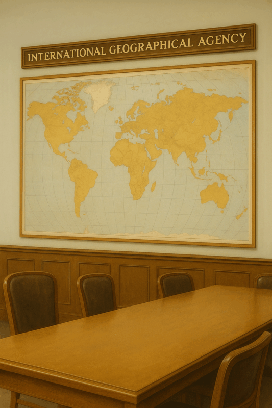 Ти стоїш у залі Міжнародного Географічного Агентства.
